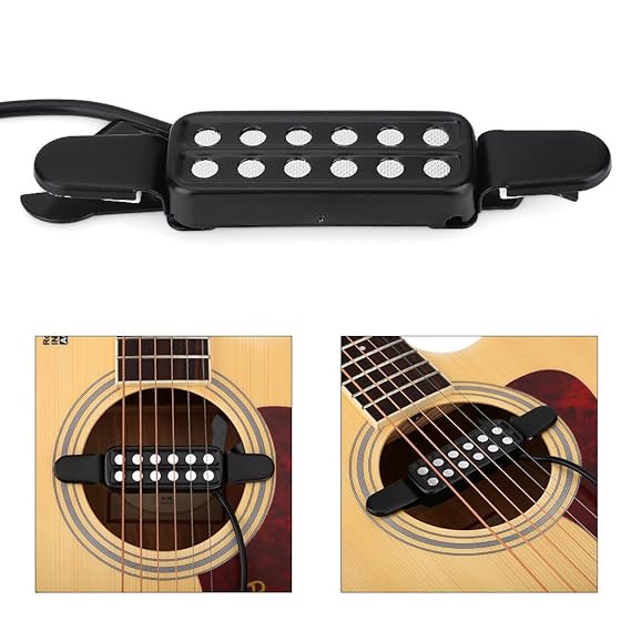 12 Sound Hole Guitar Pickup, Classic Transducer Pickups Electric Volume Pickup Accessories for Acoustic Guitar. HIGH QUALITY: The 12 hole magnetic acoustic guitar sound pickup is made of material with fine workmanship and exquisite design, which is and portable. A good music attachment for amplifying your guitar sound. GOOD PERFORMANCE: The frequency is wide, the noise is low, the sound of the instrument is accurate, and the sound of the instrument is enhanced, simple, convenient and the quality is imagination. The protective soft pads can the acoustic holes of the guitar well. EASY TO USE: The pickups V font is a movable interface that is used to convert a stuck sound hole during installation. You only need insert the pickup point to the left side of the point and then use a wrench to tighten the right side to connect the wire from the base of the guitar to the amplifier and speaker. UNIVERSAL DESIGN: The pickups is suitable for metal string guitar and acoustic guitar. It is sufficient for large stage performances, family use, and rehearsals. GUARANTEE: If you are not satisfied with our product you received, you can send emails to us at any time. We will reply you instantly and help you solve your problem.